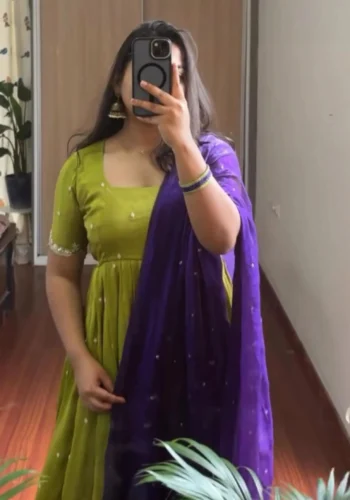 Unveil The Perfect Harmony Of Bold And Vibrant Hues In Our Neon Lime Sequence Suit Set, A Fashion Spectacle Ready To Steal The Spotlight! The Bright Neon Anarkali-style Sequence Pattern Suit Set Is A Fiery Expression Of Your Style Spirit, While The Bold Purple Dupatta Adds A Playful Twist. With A Round-neck Anarkali This Ensemble Is Your Secret Formula For Making Statements.