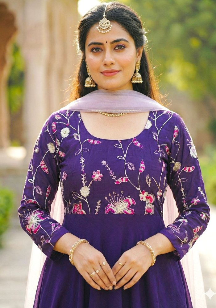 Step Into The World Of Style With Our Mesmerizing Anarkali! The Intricate Work Details All Over The Yok And Sleeves Represents Elegance Fabric Creates A Captivating Look That’s Both Elegant And Trendy. Embrace The Beauty Makes A Statement Wherever You Go.