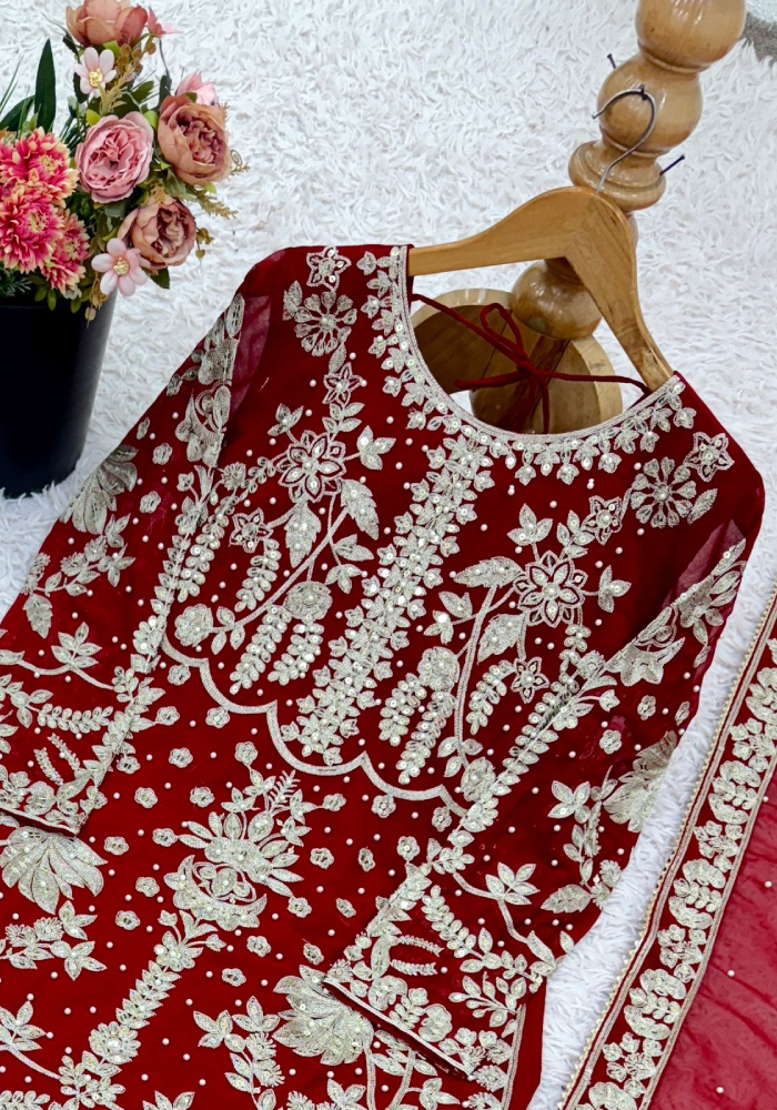 Elegant Embroidered Sequence Designer Suit Three Piece Set”*