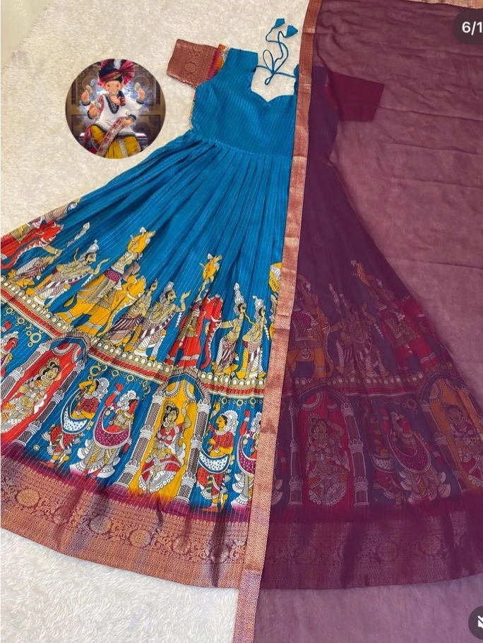 Unveiling Our Stunning Long Maxi In Vichitra Silk Fabric, Paired With An Intricately Embroidered Yok. Perfect For Festive Celebrations Or Pre-wedding Events Like Haldi, This Outfit Radiates Timeless Elegance!