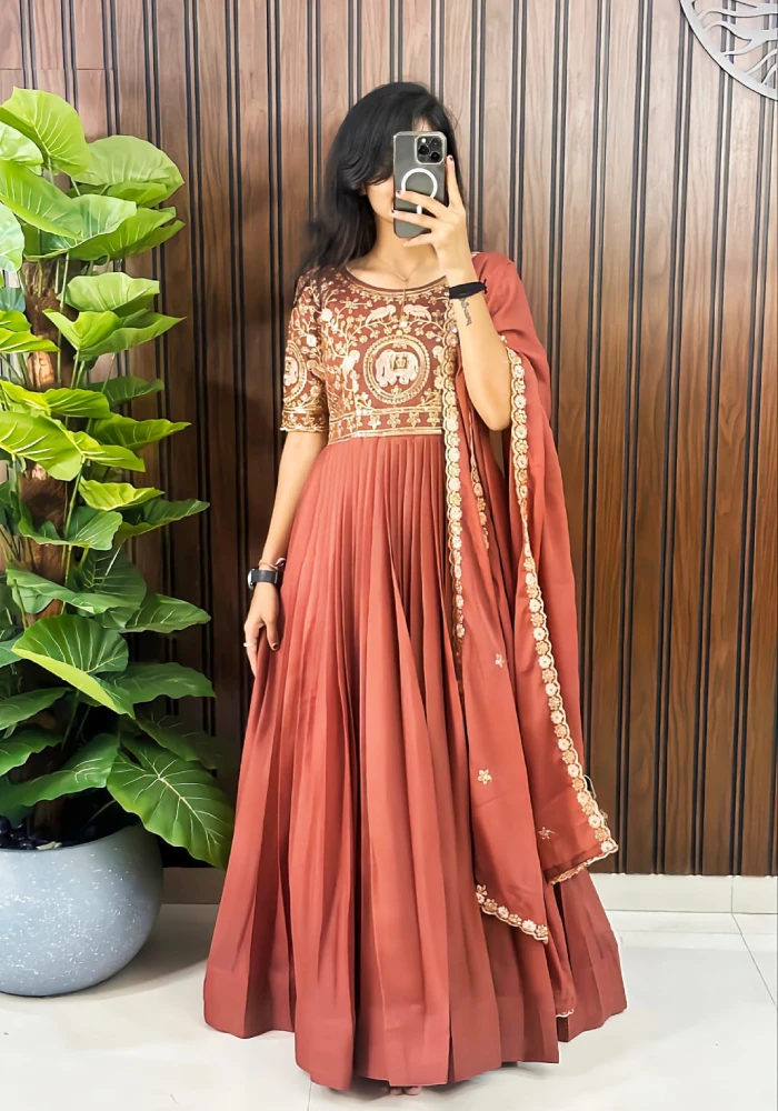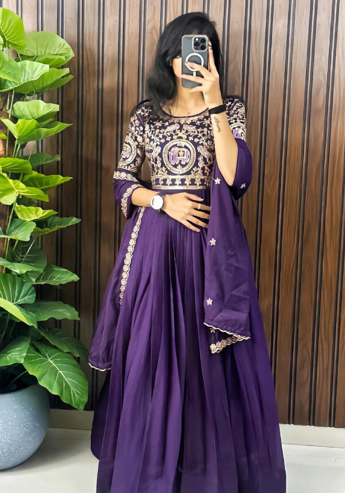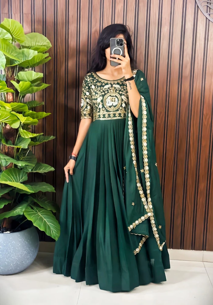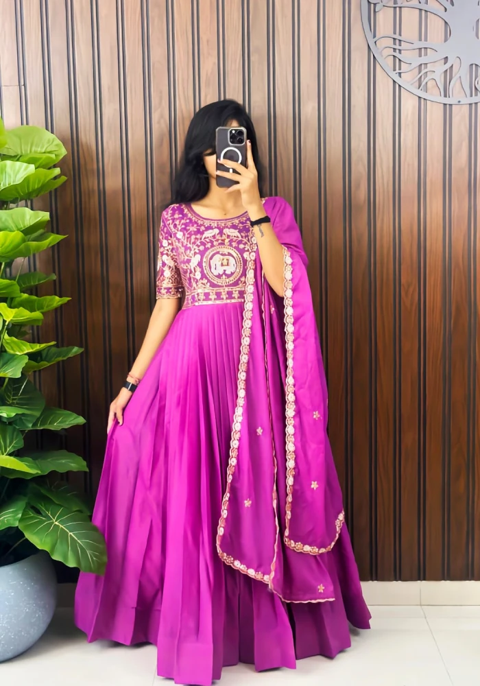 Designer Gown Is Luxury Clothing,considered To Be High Quality Made B Zari-thread & Sequins Embroidery. This Is Made For Desirable Women’s Who Deserve It