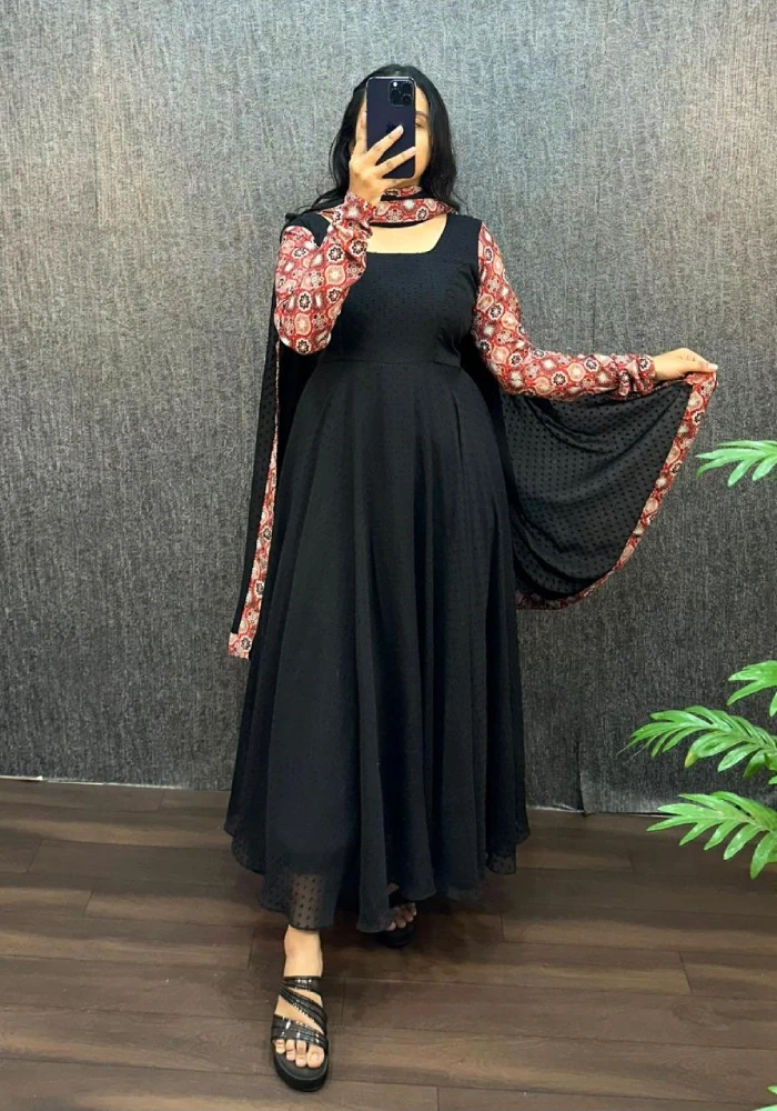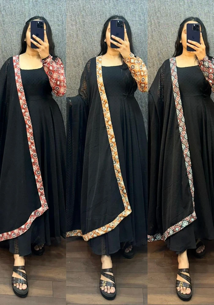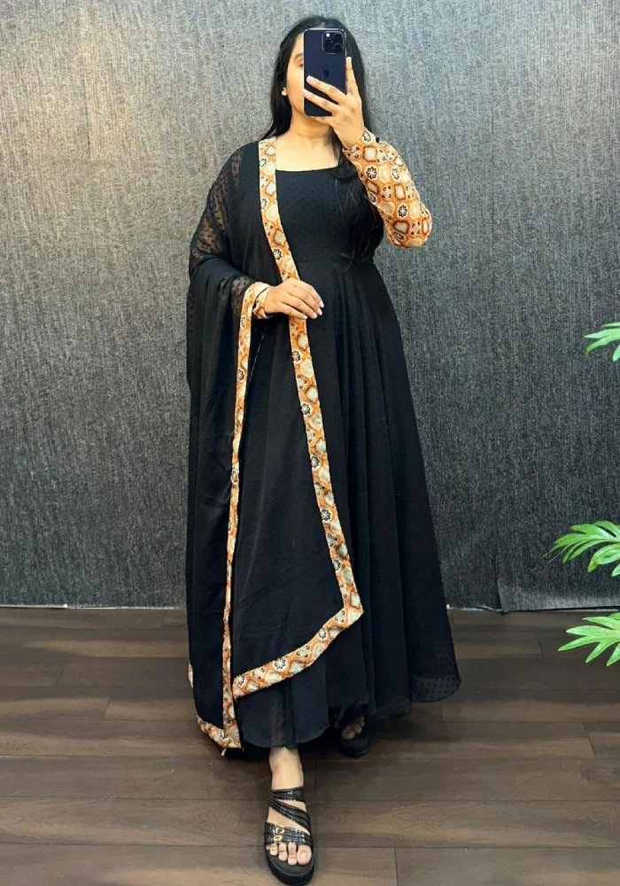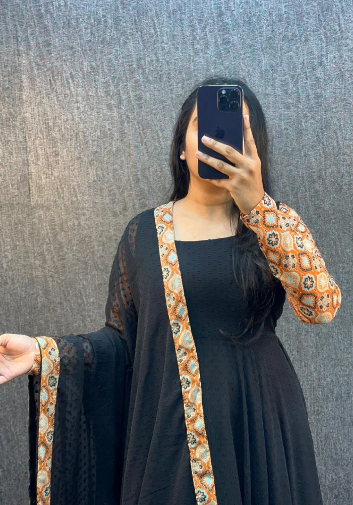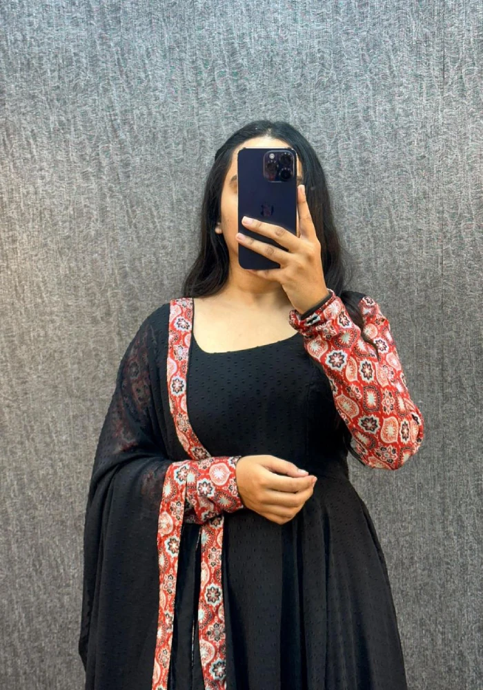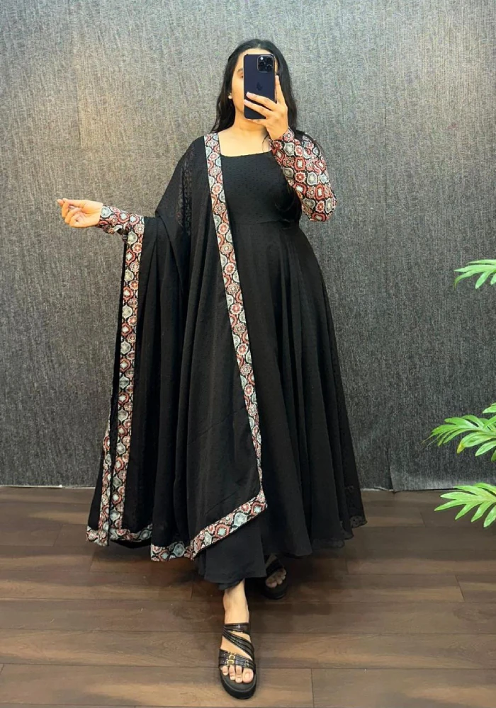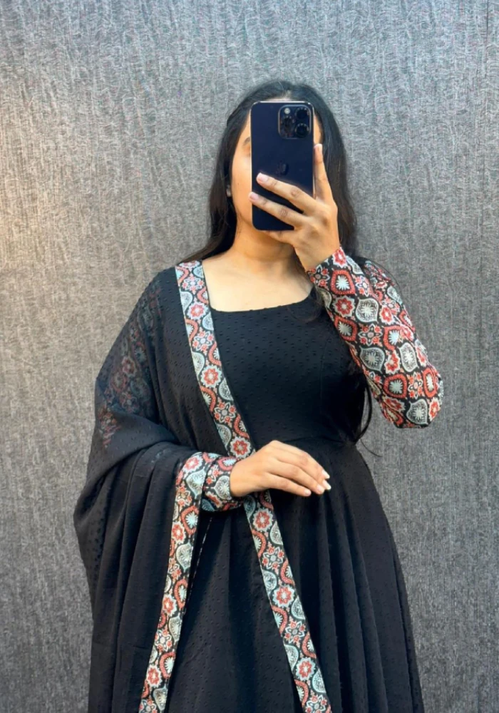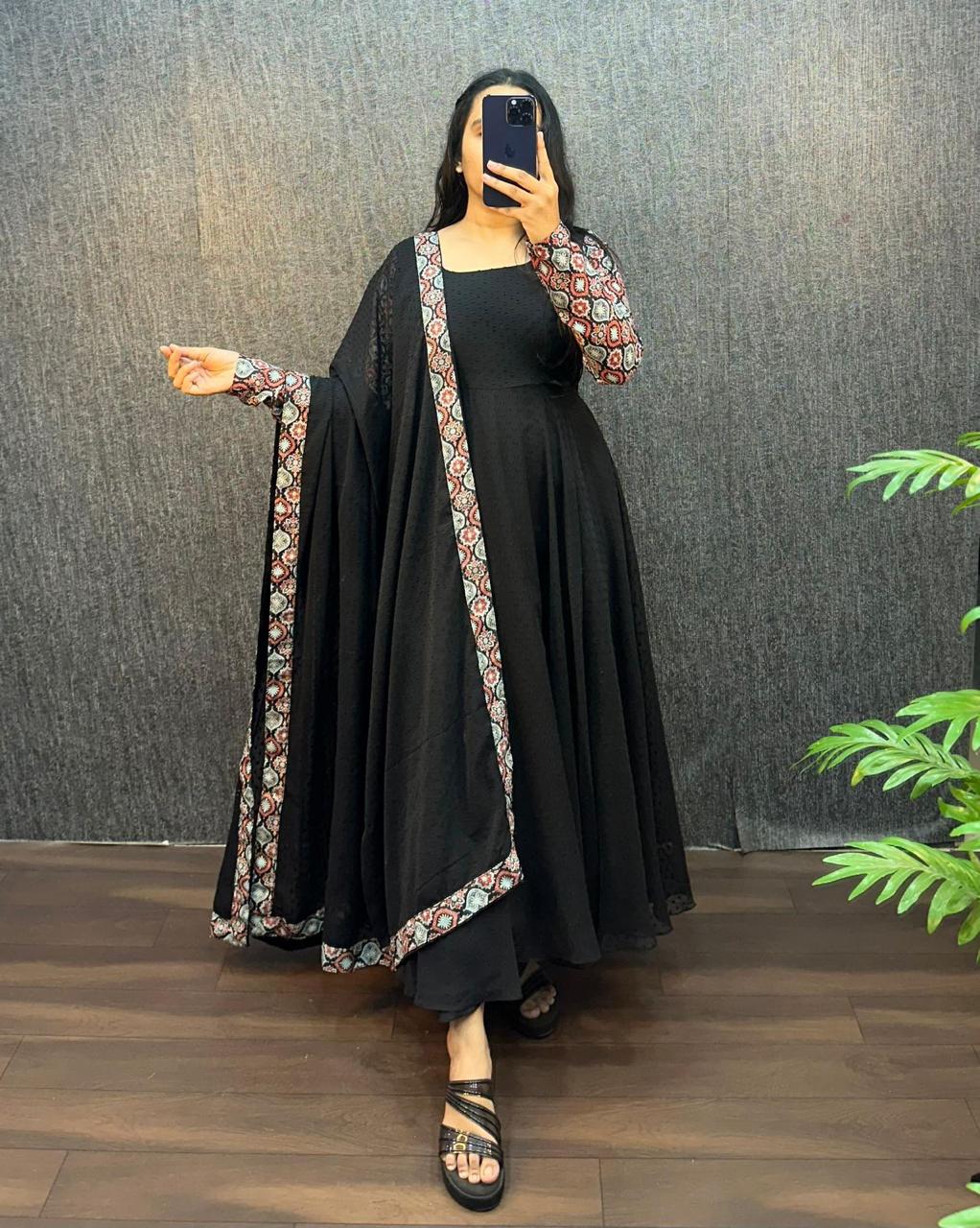 New Anarkali Kurta Set With Cotton Pant & Malmal Dupatta With Tier Pattern.