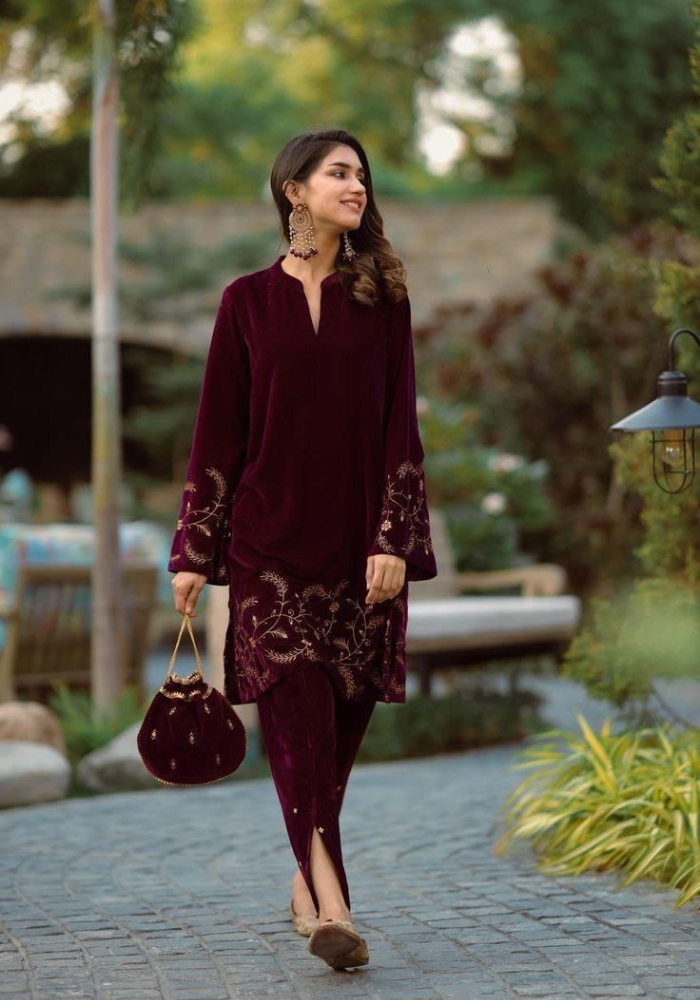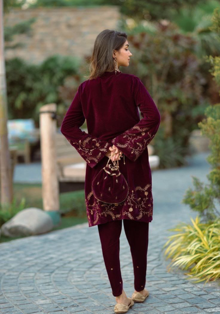 Top: Velvet Cord Set With Beautiful Embroidery Work ❣