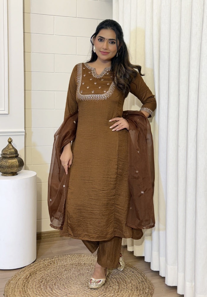 Best Reyon export Quality fabric kurti with pant and latkan Dupatta,Beautiful Heavy Sequence Embroidery & Heavy Adda hand work all over kurti
