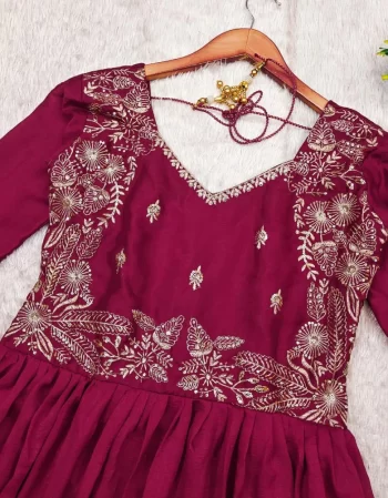 Style In Ethnic Wear Fall In Love With Very Minimal Embroidery With Solid Combination! Enriched With This Desi Look, We Love This Gorgeous Flared Anarkali That falls Perfectly Any Occasion